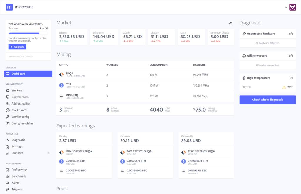 Эта платформа нацелена прежде всего на крупных операторов, но энтузиасты могут использовать бесплатную версию для десятков майнеров.